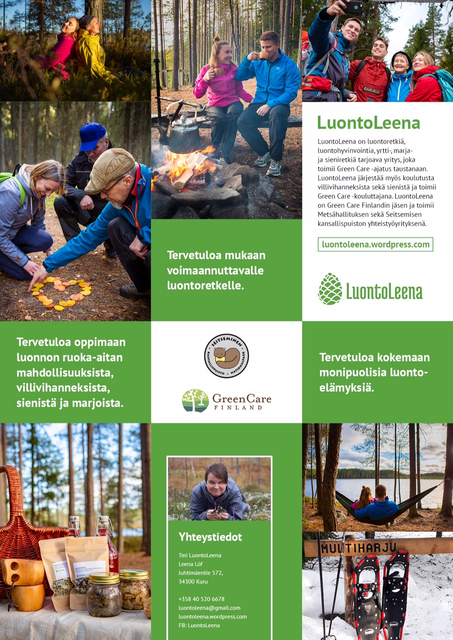 Soita ja kysy lisää palveluistamme 0405206678 tai lähetä sähköpostia osoitteeseen: luontoleena@gmail.com